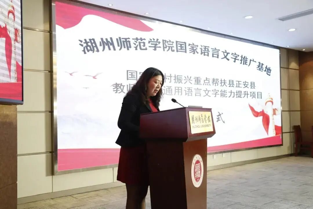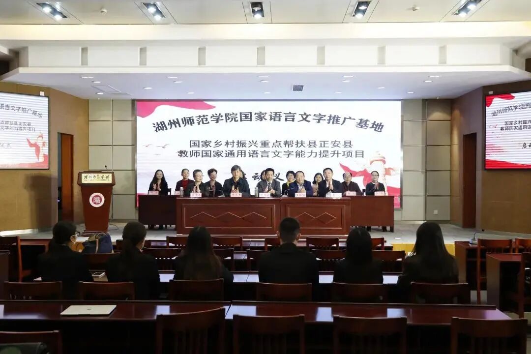 2021年11月3日晚,由湖州师范学院国家语言文字推广基地承办的国家乡村振兴重点帮扶县正安县教师国家通用语言文字能力提升项目启动仪式在学校东校区明达楼126会议室隆重举行。