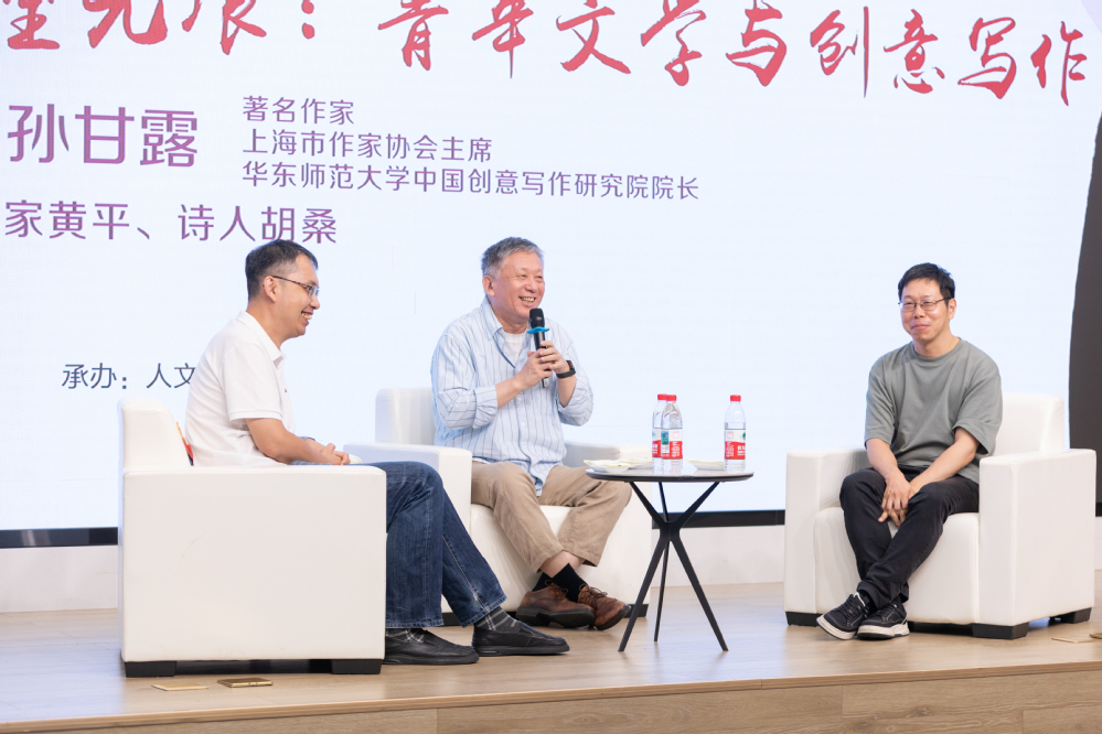揭牌仪式后,“胡瑗大讲堂”以“千里江山望无垠:青年文学与创意写作”为主题举行。孙甘露携手评论家黄平、诗人胡桑展开对话,与现场师生分享创作理念和写作经验。讲座由朱小芳主持。