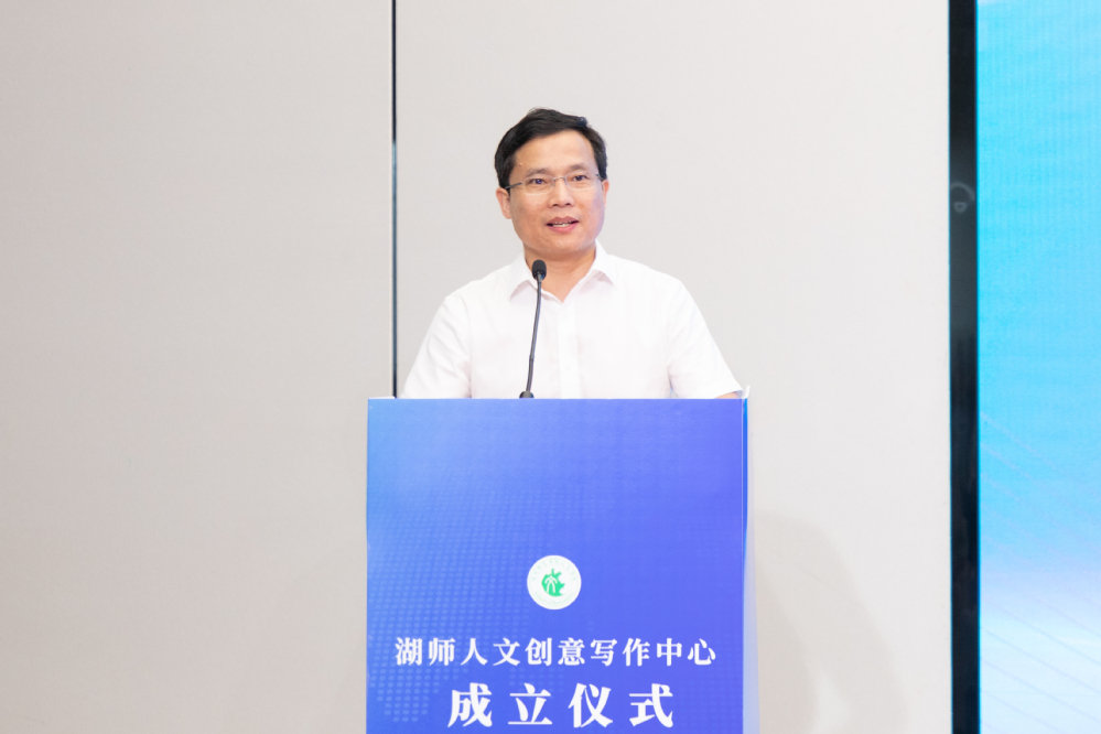 湖师人文创意写作中心主任郭公民博士在发言中表示,中心将秉持“文学为本,创意为翼”的宗旨,积极整合校内外资源,努力建设成为国内有影响力的文学创作与研究平台。
