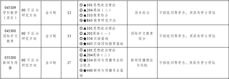 注:加“▲”者为全国统一命题科目。加“★”者为全国统一规定代码的招生单位联合命题或自命题科目。