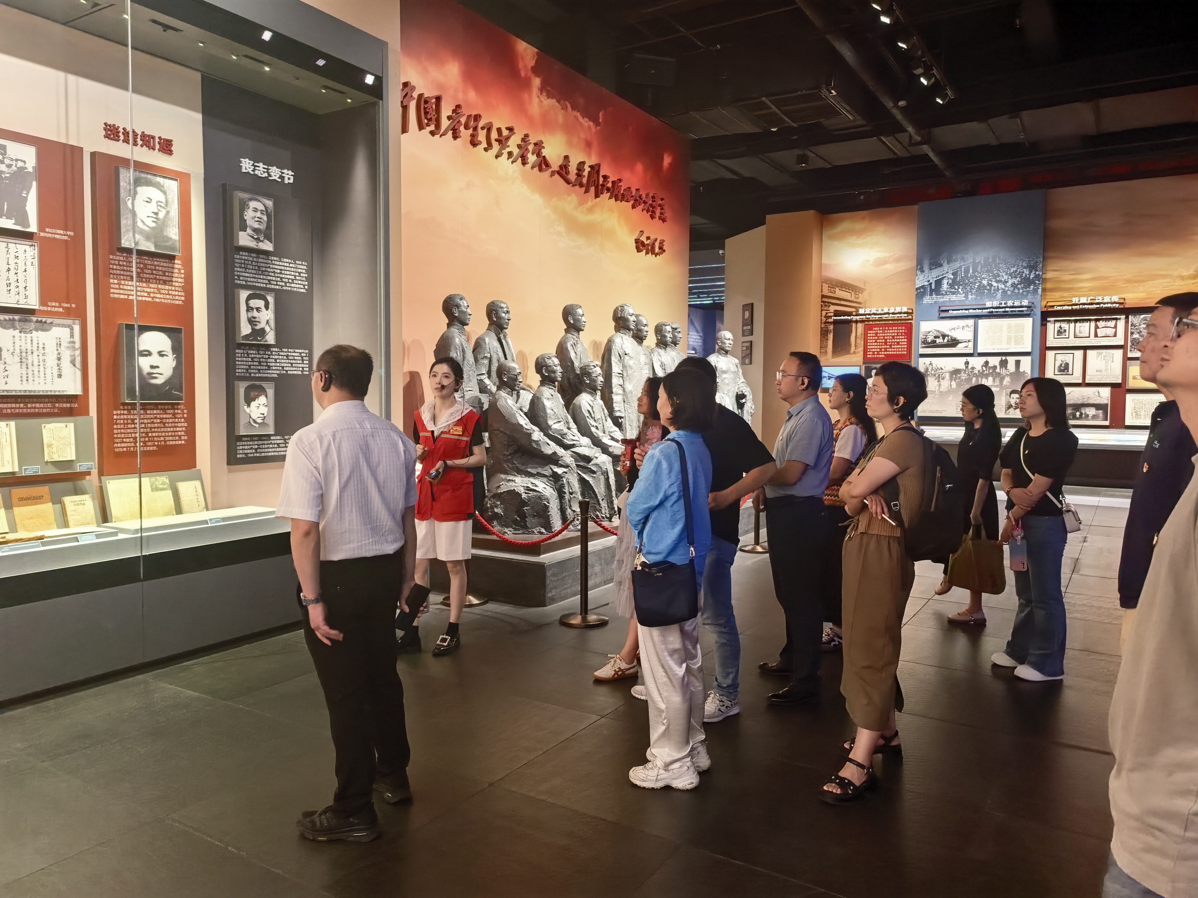 活动伊始,纪念馆党史讲解员以“红船精神”为题,带领党员教师沿着“救亡图存”“开天辟地”“光辉历程”“走向复兴”四大展陈板块徐徐展开了一场“时空对话”。从近代中国在列强欺凌下的艰难求索,到中共一大代表在南湖红船上完成建党伟业的划时代转折,再到党领导人民从站起来、富起来到强起来的壮阔征程,讲解员结合中共一大代表手稿、南湖红船模型等珍贵文物,以历史脉络为轴,系统阐释了“敢为人先的首创精神、百折不挠的奋斗精神、忠诚为民的奉献精神”的历史渊源与时代价值,引导党员教师深入思考如何将红色基因转化为立德树人的实践力量。