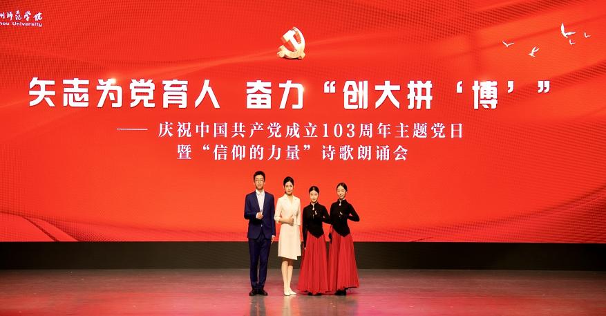 语言有温度,文字知春秋。朗诵于黄俊楠而言,是有温度的表达,更是内心信念的传递。在建党103周年的朗诵会上,她以《青春中国》深情回望从鸦片战争到改革开放的峥嵘岁月;金秋九月,她与退休教师同台演绎《秋天里的中国》,用激昂的语调回应时代的召唤;国庆升旗仪式上,她以饱含热忱的朗诵向五星红旗献上崇高礼赞;国家公祭日,她在《和平宣言》中融入鲁迅的殷切期许,以青春之声诠释“铭记历史、勇担使命”的铮铮誓言。每一次朗诵,都是对祖国最深情的告白。