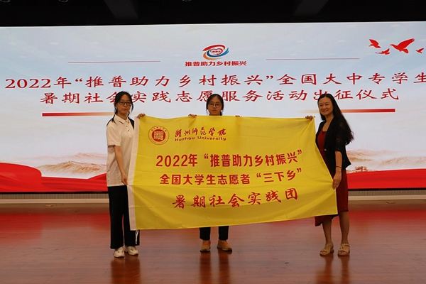 7月18日,由教育部语言文字应用管理司和共青团中央青年发展部联合发起开展的2022年“推普助力乡村振兴”全国大中专学生暑期社会实践志愿服务活动,在江苏师范大学正式启动。本次社会实践活动共收到全国大中专院校近3000支实践团队的申报材料,经教育部语言文字应用管理司专家严格评审,最终遴选出全国626所高校958支团队的近万名大中专学生志愿者团队,奔赴中西部民族地区和农村地区开展乡村推普工作。我校国家语言文字推广基地共有5支团队入选,并派师生代表参加了本次志愿服务活动出征仪式。