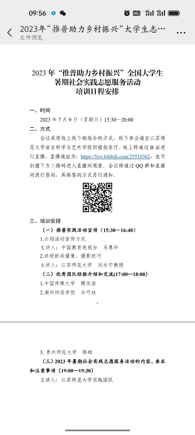 7月9日,由教育部语言文字应用管理司、共青团中央青年发展部联合发起的2023年“推普助力乡村振兴”全国大学生暑期社会实践志愿服务活动的出征仪式和实践培训在江苏师范大学顺利举行。我校人文学院许巧枝老师带领学生团队参加本次出征仪式。许巧枝老师还在本次活动的实践培训部分进行了优秀团队实践经验的分析。