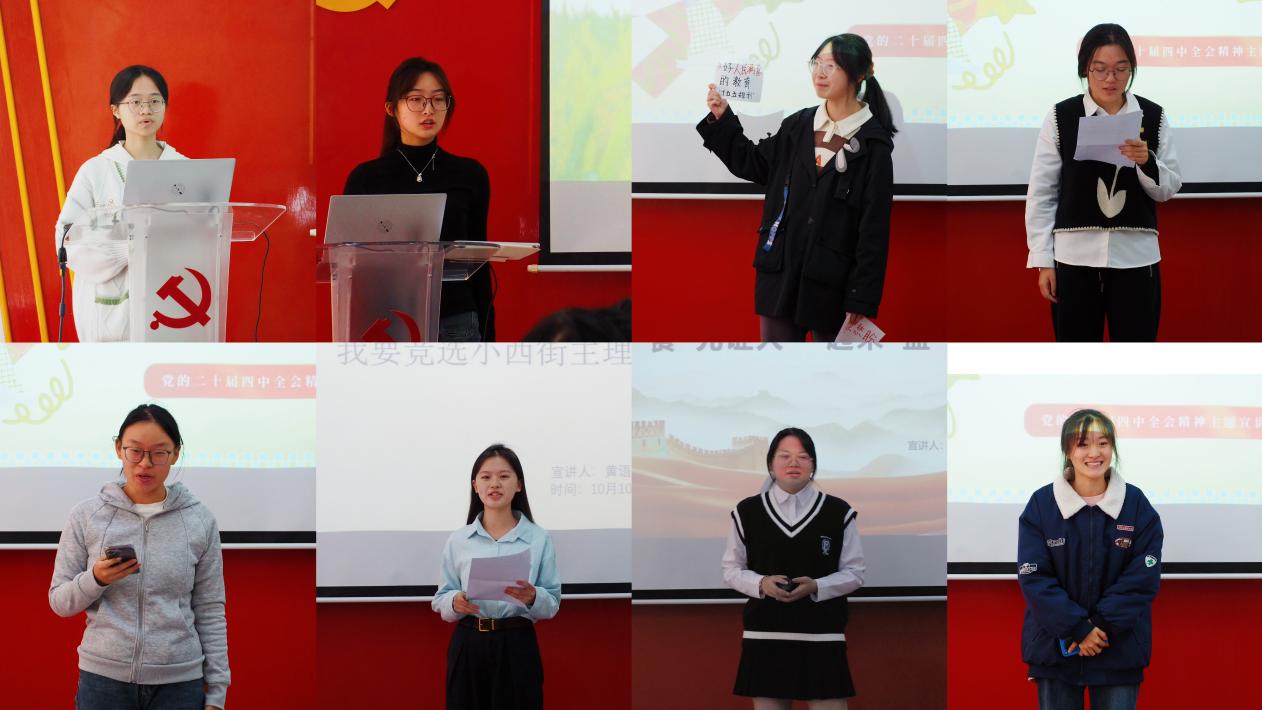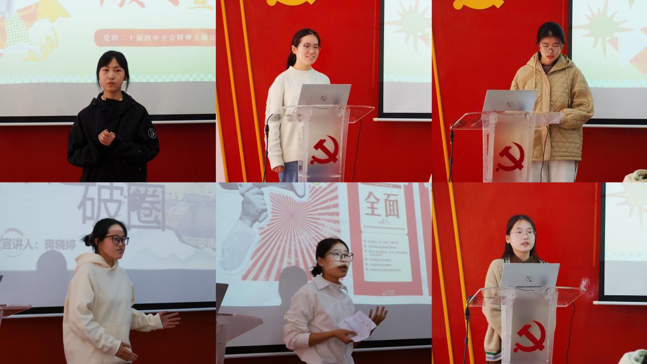 本次宣讲围绕学习贯彻党的二十届四中全会精神,鼓励选手结合学习生活经历,从青年视角做好党的创新理论宣传阐释。参赛选手各展风采,宣讲角度丰富多元。有的从非遗文化传承出发,讲述传统技艺在时代发展中的焕新之路,印证文化强国建设的生动实践;有的聚焦青年自身成长,分享在学习实践中践行使命担当的经历,诠释青年与国家同频共振的时代责任;有的围绕粮食安全议题,结合日常饮食中的节约理念,解读国家民生保障政策的深远意义。接地气的表达、鲜活的案例引发师生强烈共鸣,现场互动频繁,气氛热烈。