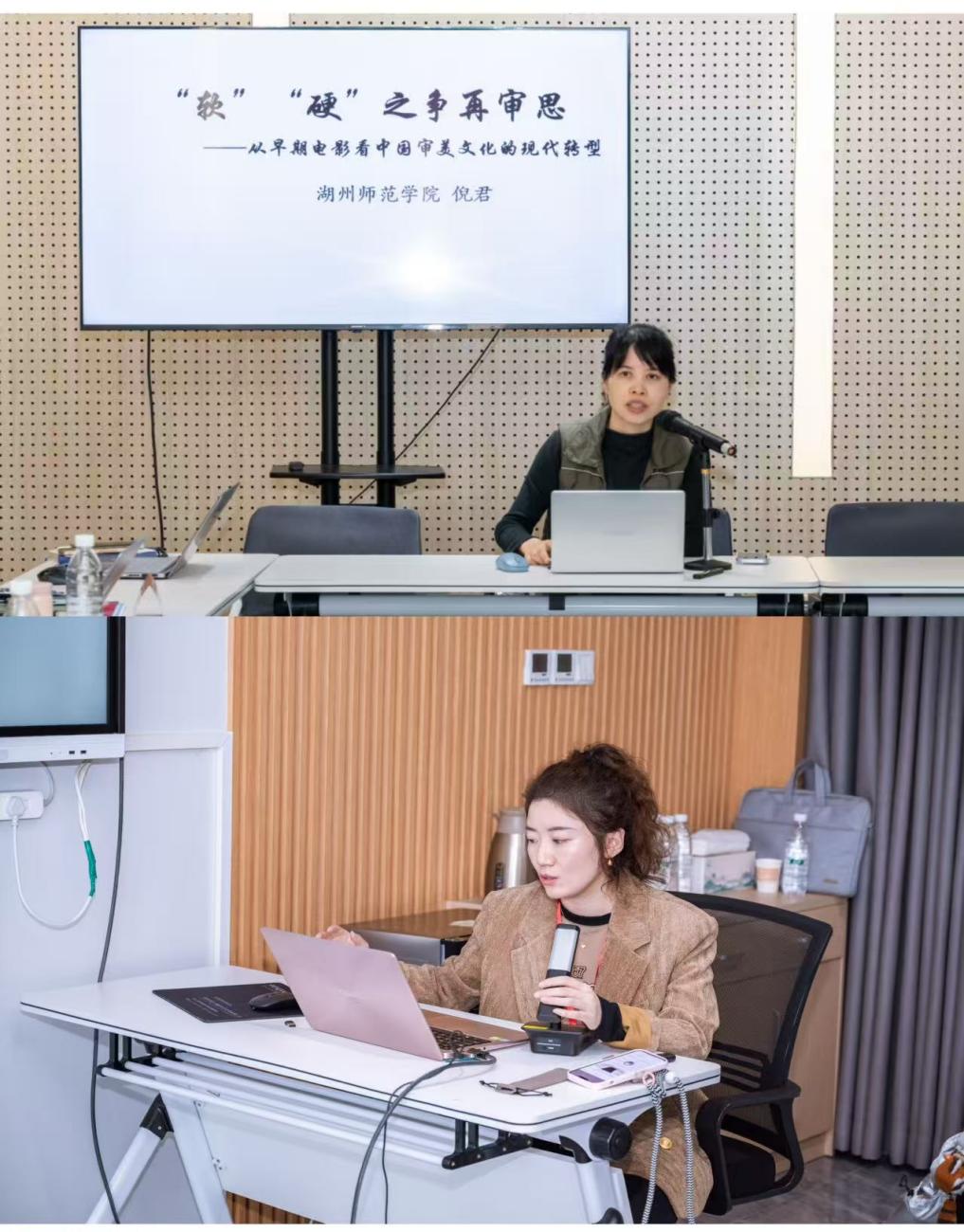 会上,倪君教授、王安婷讲师分别作相关领域的学术分享,并在提问和讨论环节与专家、学生积极互动,通过现场点评和交流,帮助研究生在具体案例中加深对专业理论、学术规范和价值导向的理解,进一步引导学生在研究和创作中自觉把社会责任感、家国情怀融入影视与传播实践。