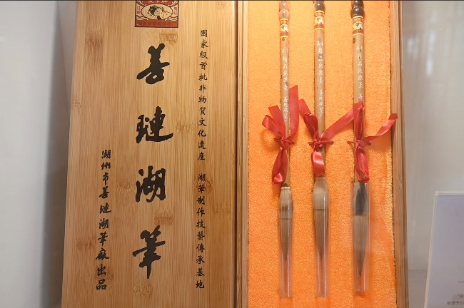 期间,在博物馆讲解员的引导下,人文学院师生依次参观了历史沿革厅、制作工艺厅、历代名笔厅等展区。从战国时期的毛笔雏形到现代的精品湖笔,从选料、水盆、结头到择笔的复杂工序,大家通过实物观察、文字解读和互动体验,全面了解湖笔作为“文房四宝”之一的文化地位与传承价值,深刻感受传统手工艺人“精益求精、守正创新”的匠心精神。
