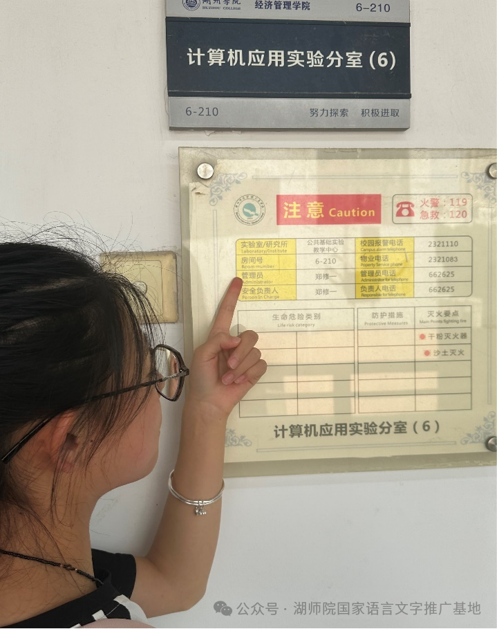 此次行动中,团队成员兵分两路,一组深入湖州师范学院校园各校区,细致检查教学楼信息栏、美食广场各商家招牌、寝室楼警示标语等文字信息,“啄” 出了翻译错误、搭配错误、错别字等语言文字应用方面的错误。
