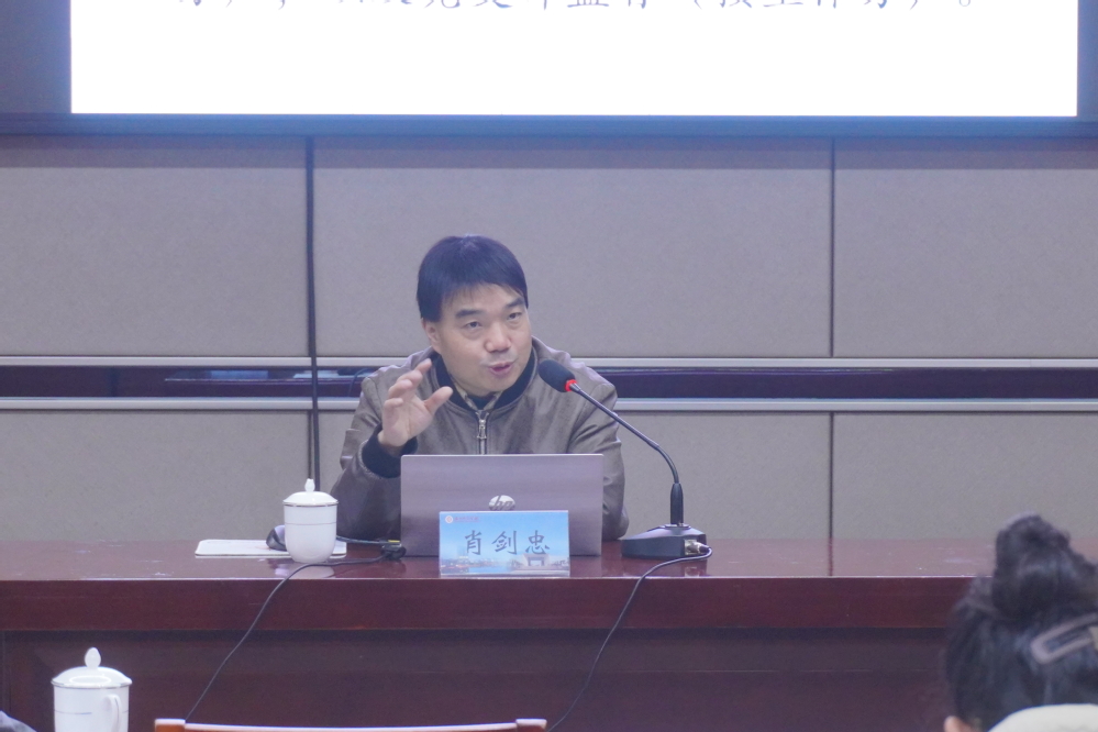 1126日下午,学校第二期“明达先锋”党建论坛暨“红蕴人文”组织员工作室第二期“红蕴课堂”活动在明达楼230会议室顺利举办。活动特邀浙江工业大学马克思主义学院教授、中共浙江省委党校全面从严治党研究中心研究员肖剑忠作题为“如何高质量开展党建研究工作”的专题讲座。校党委组织部副部长郭胜,“四强”组织员培养对象、在湖高校骨干组织员培养对象等30余人参加活动。活动由人文学院党委书记程龙主持。