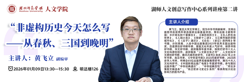 讲座题目:“非虚构历史今天怎么写——从春秋、三国到晚明”