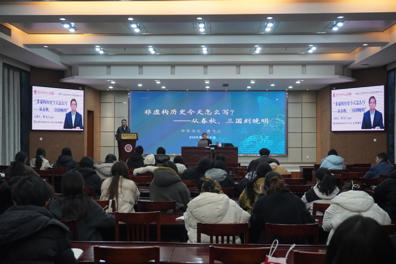 2026年1月9日下午,湖师人文创意写作中心系列讲座第二讲“非虚构历史今天怎么写?——从春秋、三国到晚明”于明达楼126会议室如期开讲,主讲为中华书局副编审黄飞立,讲座由中心主任郭公民主持。