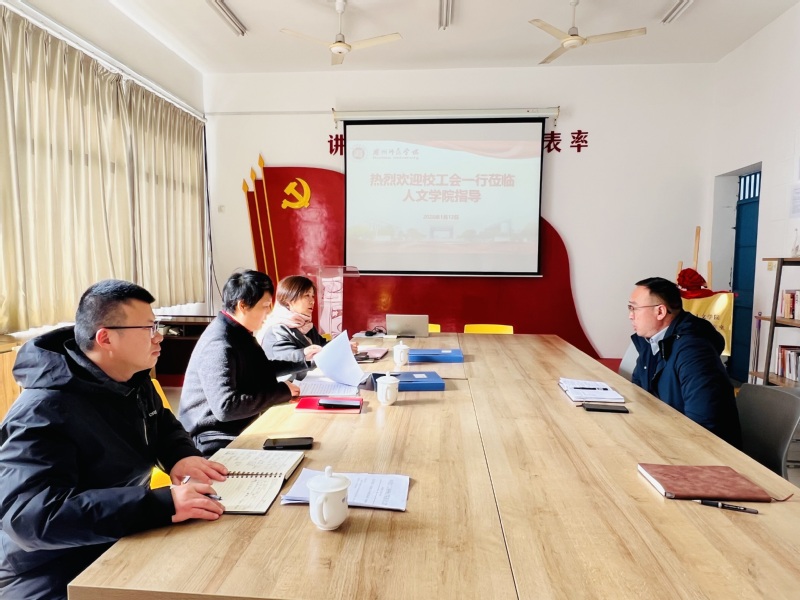1月12日上午,校工会主席周晓虹一行三人赴人文学院走访调研,重点考察“教工小家”建设推进情况,并亲切慰问了学院部分困难教职工。人文学院党委书记程龙、学院工会委员李智鹏在学院305会议室与校工会调研组举行了座谈。周晓虹主席对人文学院分工会的相关工作进行了肯定,对学院党委对工会工作的支持表示了感谢。