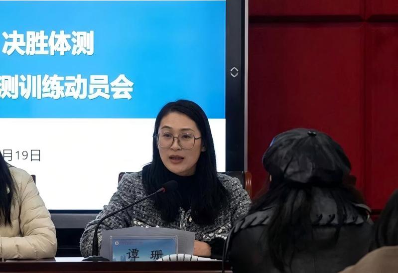 学院党委副书记谭珊老师作动员讲话。谭书记结合自身经历,深入分析了当前大学生面临的健康挑战,并强调大三学生正处于身体素质的黄金时期,面对升学、就业等多重压力,更需重视体育锻炼,为未来打下坚实的健康基础。她动员各班级干部要发挥骨干作用,组织召开主题班会,做好全员思想动员,夯实身体素质。