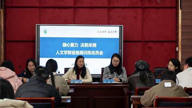 为全面提升学生体质健康水平,迎接即将到来的浙江省大学生体质健康测试,人文学院于3月19日在13-509会议室召开省抽测训练动员会。学院教学副院长黄乐、学院党委副书记谭珊、辅导员以及23级学生代表参加了会议。