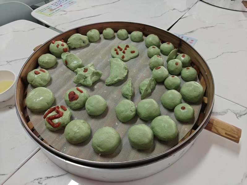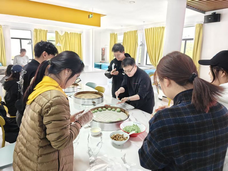 活动现场,工作人员提前备好糯米粉、豆沙馅、笋干馅等青团制作材料,详细讲解了清明吃青团的民俗渊源与制作技巧。同学们分工协作,揉面、包馅、搓圆,在欢声笑语中感受民俗魅力,也在互动协作中拉近了彼此的距离。
