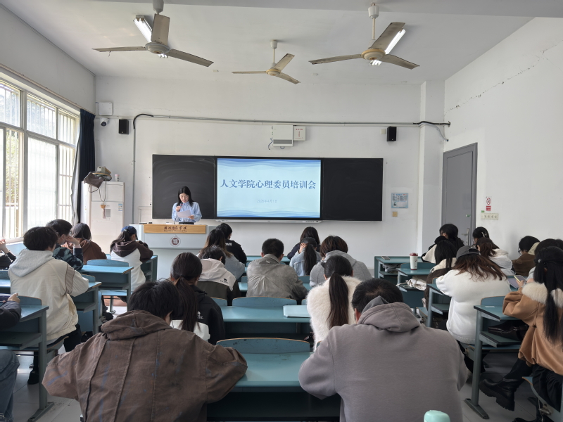 为加强学院心理委员队伍建设,提升其专业素养与工作能力,保障春季学期心理健康工作有序开展,4月1日下午,人文学院在12幢101教室举办班级心理委员专题培训会。本次培训由辅导员刘舒雅主持,学院全体心理委员参加。