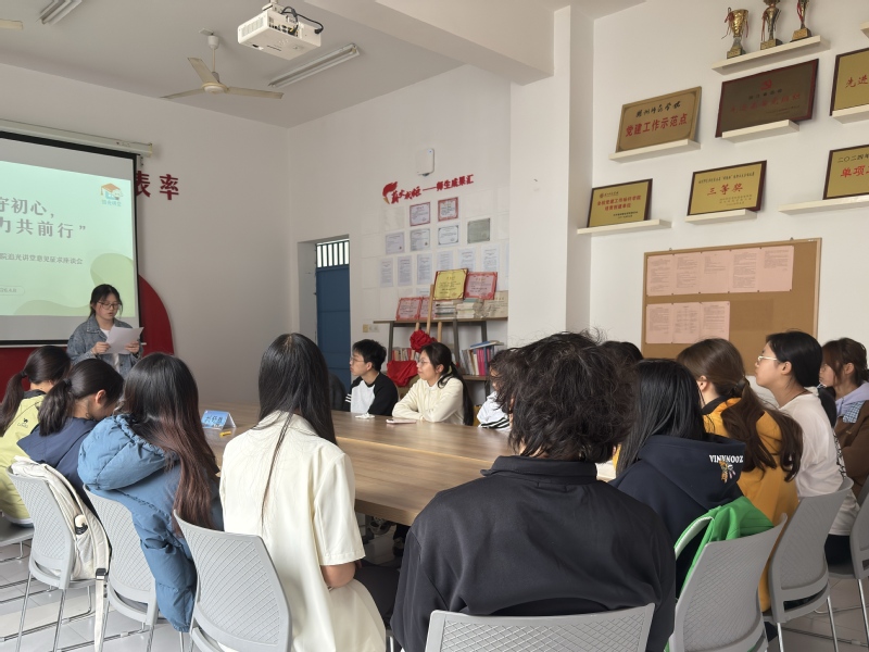 为深入推进“追光讲堂”育人平台建设,以学生心声为导向,以实战能力提升为核心,切实提升师范生教学实践能力,近日,学院在305会议室召开了以“追光逐梦守初心,凝心聚力共前行”为主题的“追光讲堂”意见征求座谈会,辅导员刘舒雅老师与学生代表共计20余人参加。