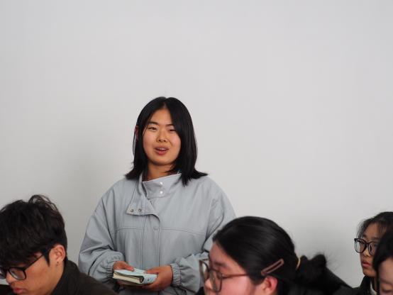 除发言同学的主题分享之外,老师和同学们也一同就写作和阅读的诸多问题进行交流。例如,如何理解史铁生层层递进的价值观念、如何进行文本细读、如何写好一篇散文、如何更好地做到词能达意等等。同学们和老师围坐一堂,亦师亦友,敞开心扉,分享彼此的阅读感悟。
